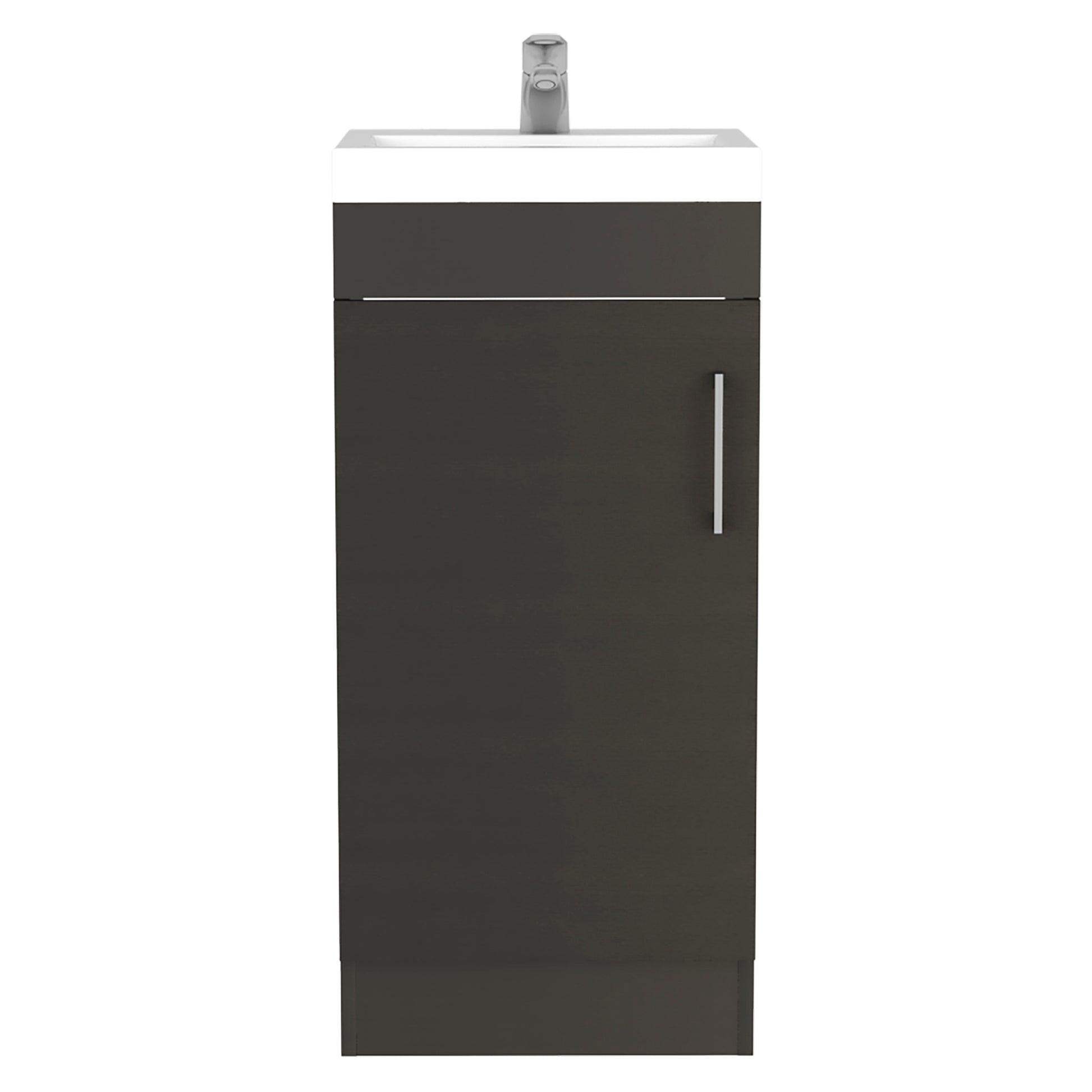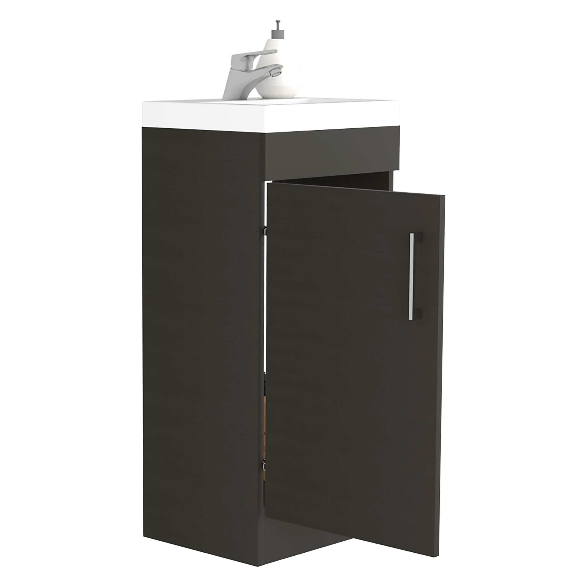 Modern Black Bathroom Vanity Sink with Metal Handle and Single Door Cabinet