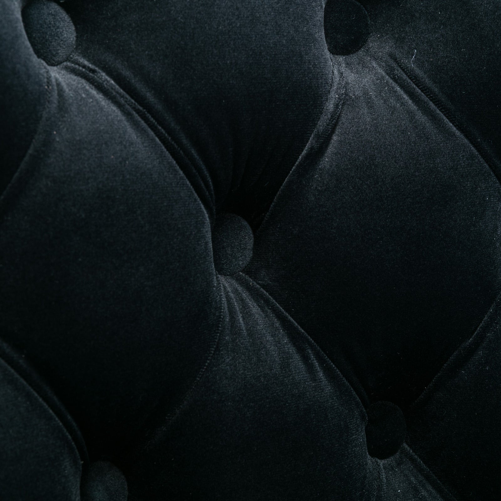 - Velvet upholstery — premium black fabric with a refined tufted back for a sophisticated look.