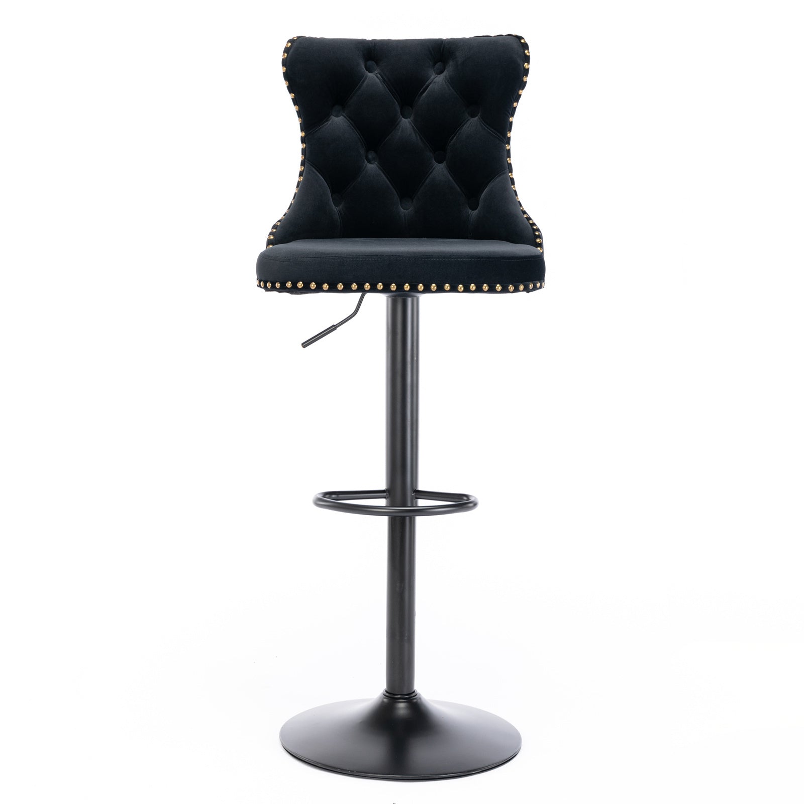 Upgrade your dining space with the Velvet Swivel Bar Stools Set of 2. These adjustable-height, back-tufted stools bring modern elegance to home bars, kitchen islands, and dining areas. The luxurious black velvet upholstery, plush foam-filled seat, and supportive back deliver style and everyday comfort for meals and entertaining.