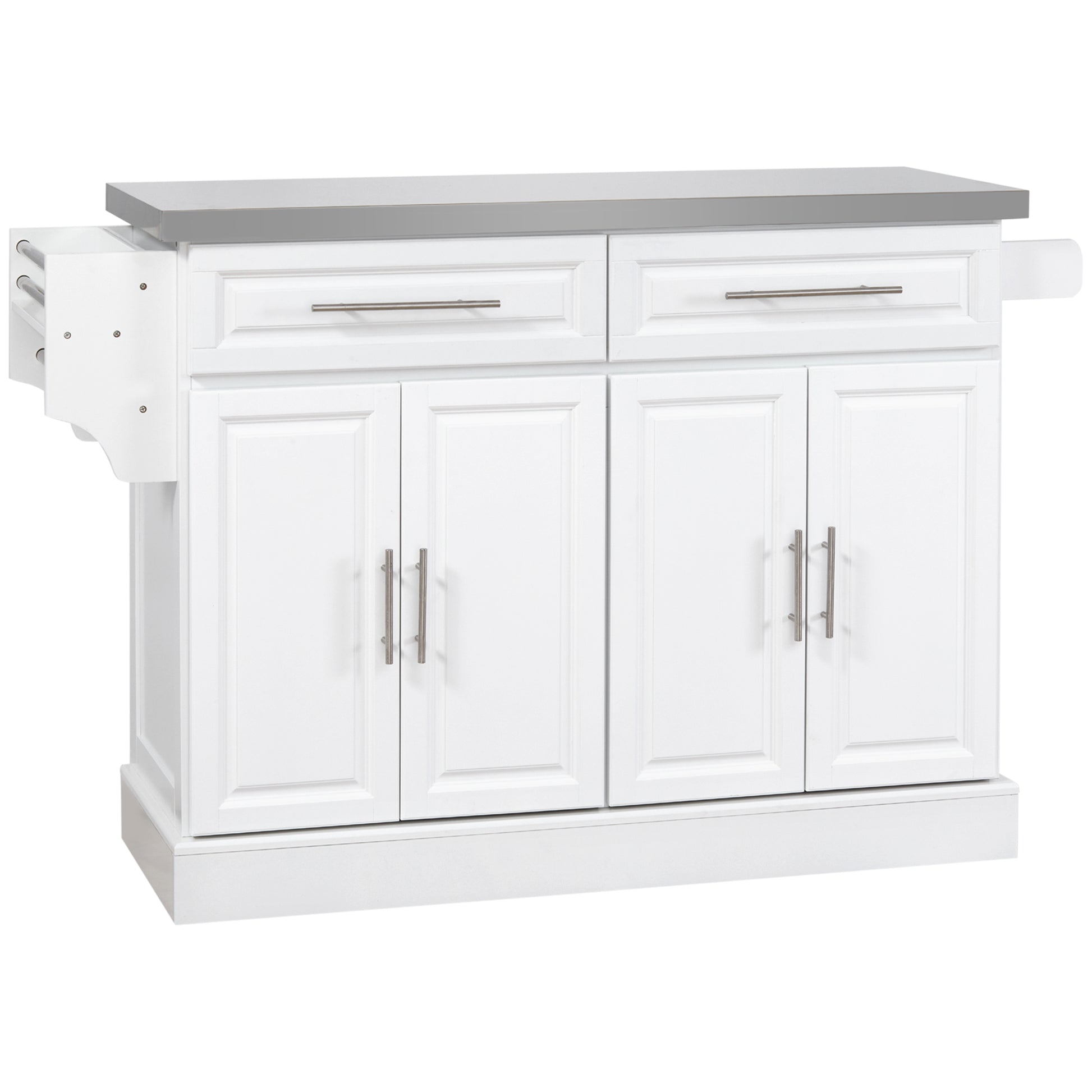 Portable Rolling Kitchen Cart with Stainless Steel Top, Storage Drawers, Spice & Knife Racks, White Finish