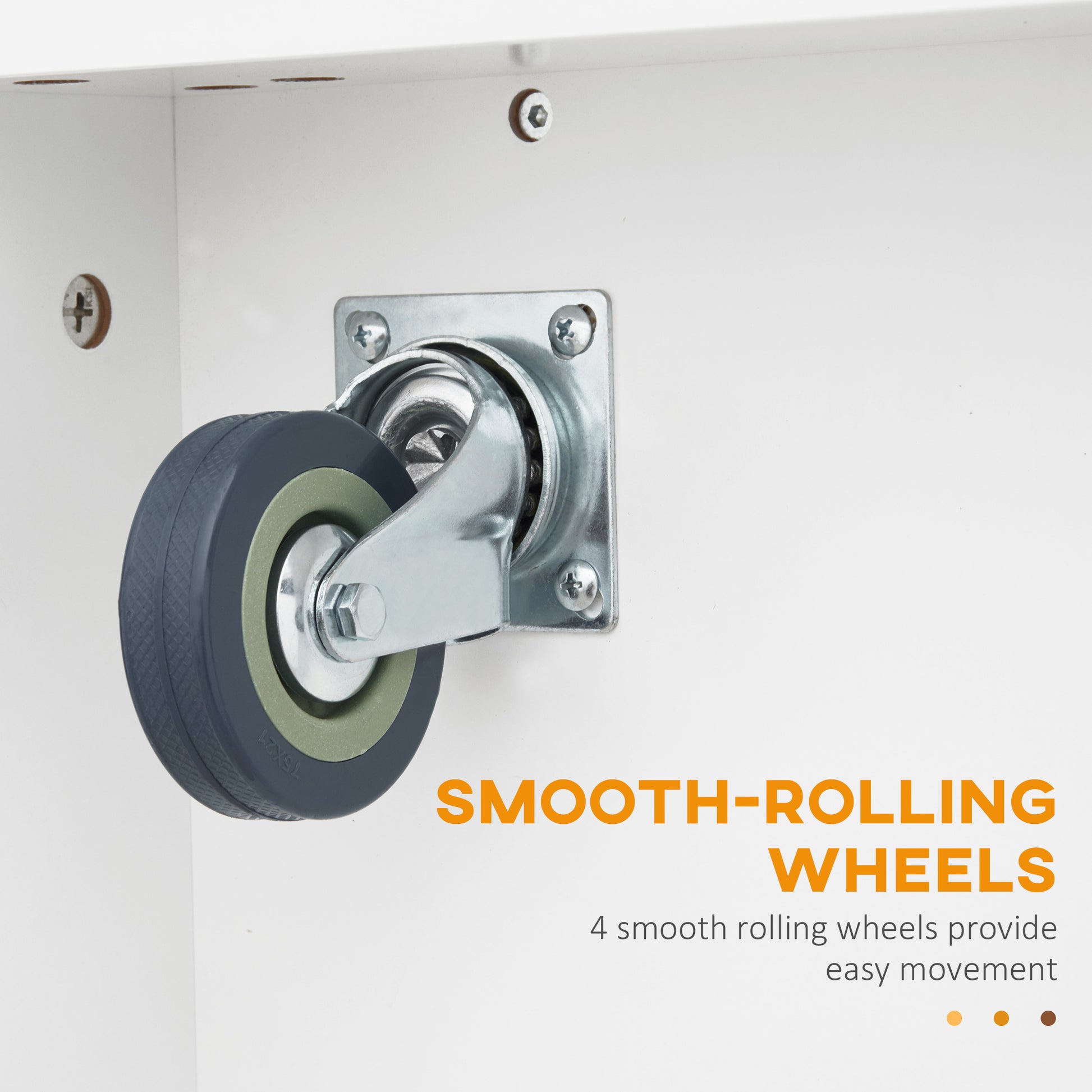 - Easy Mobility: Navigate your kitchen effortlessly with four sturdy rolling wheels. Move the cart to your desired location or transition it to another room, adapting to your cooking needs with ease.