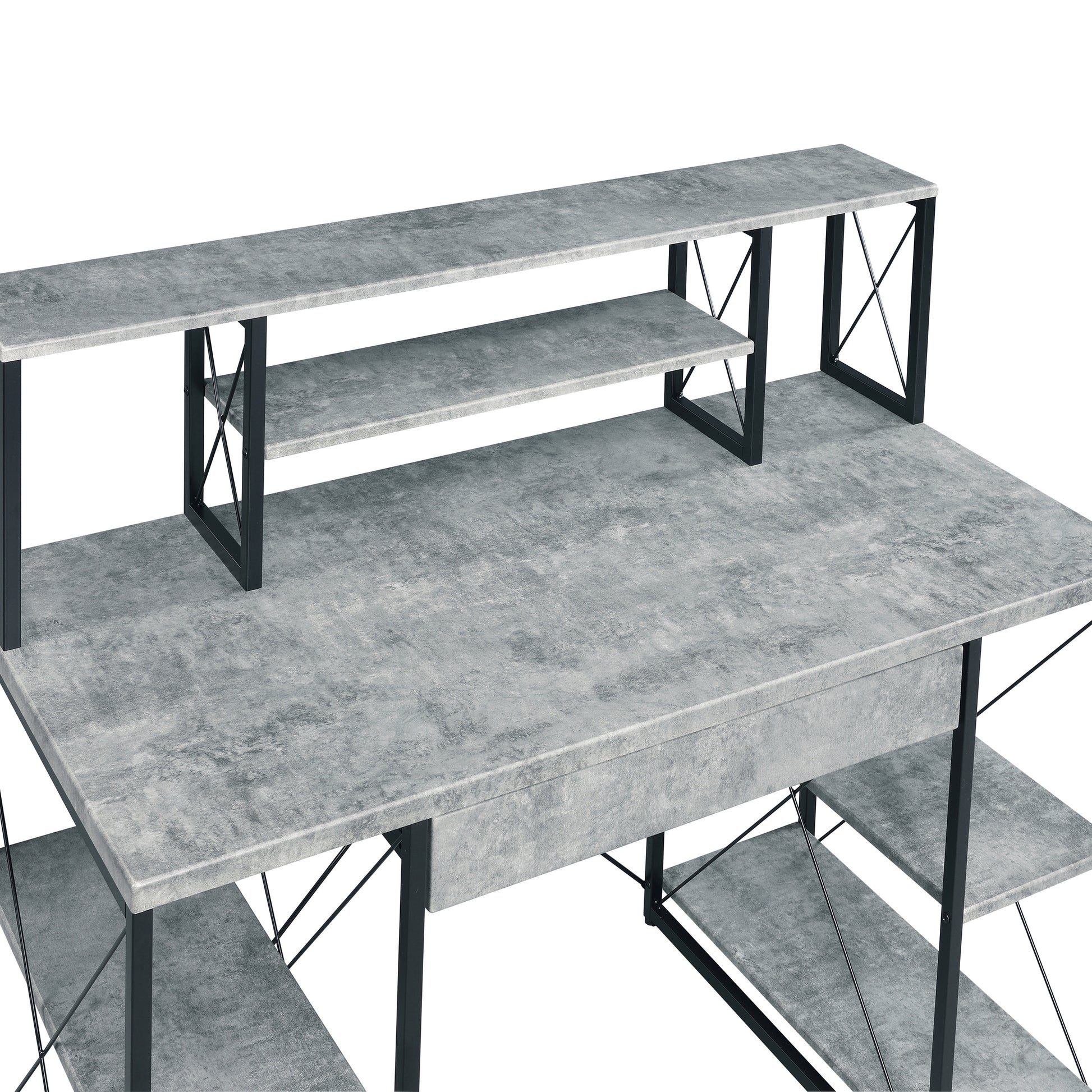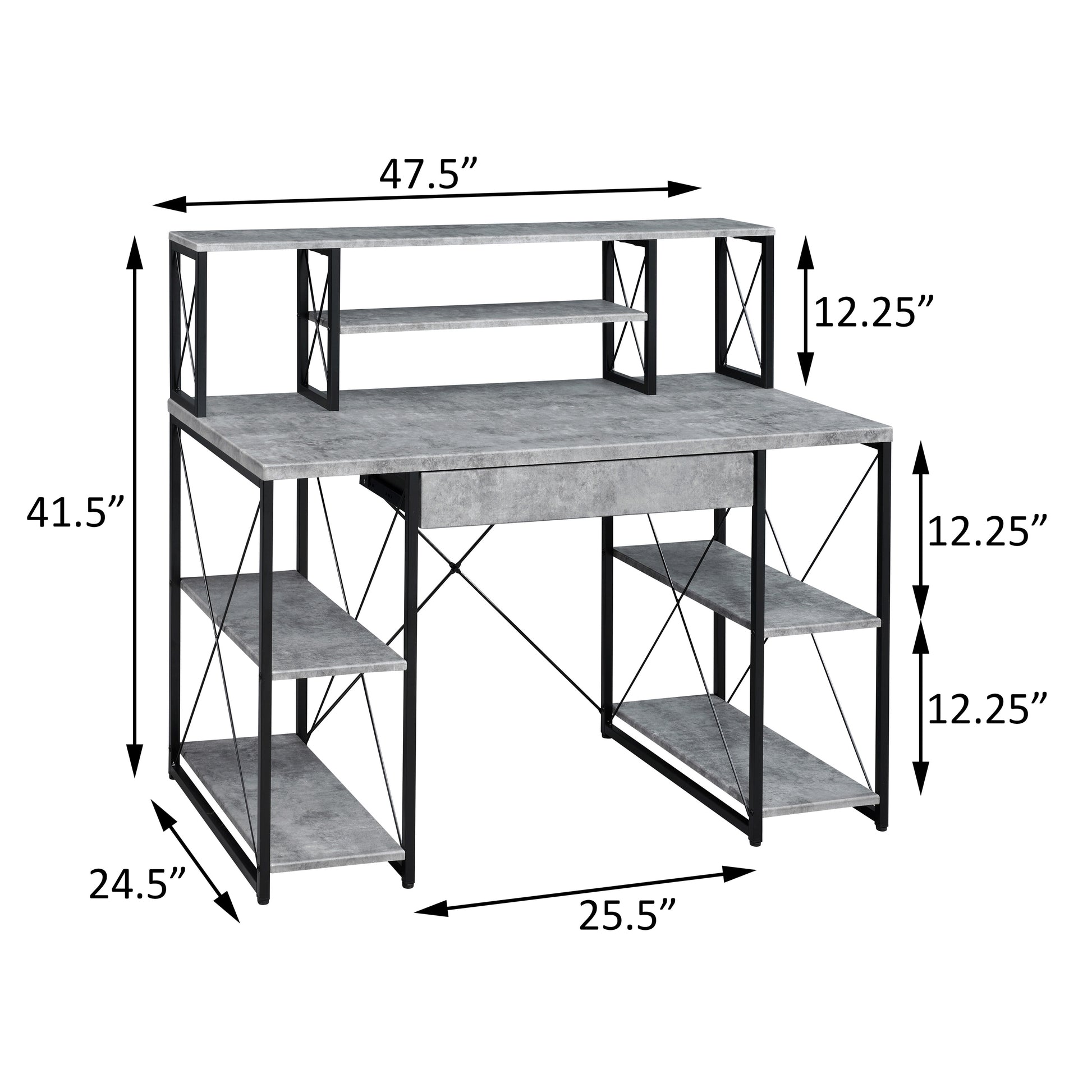 Modern Grey and Black Writing Desk with Open Storage and Hutch