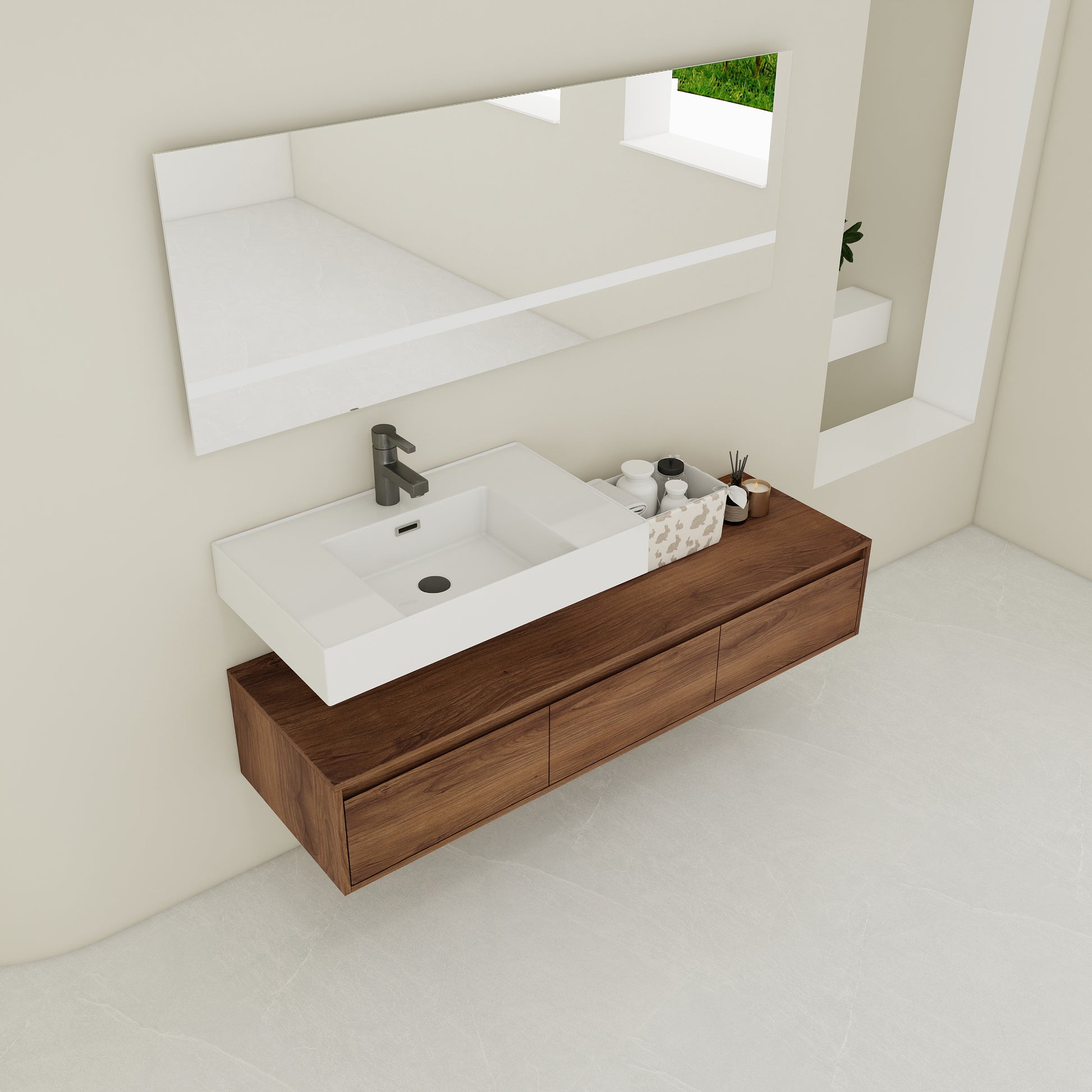 Contemporary 60-Inch Wall-Mounted Bathroom Vanity with Resin Sink and Soft-Close Drawers