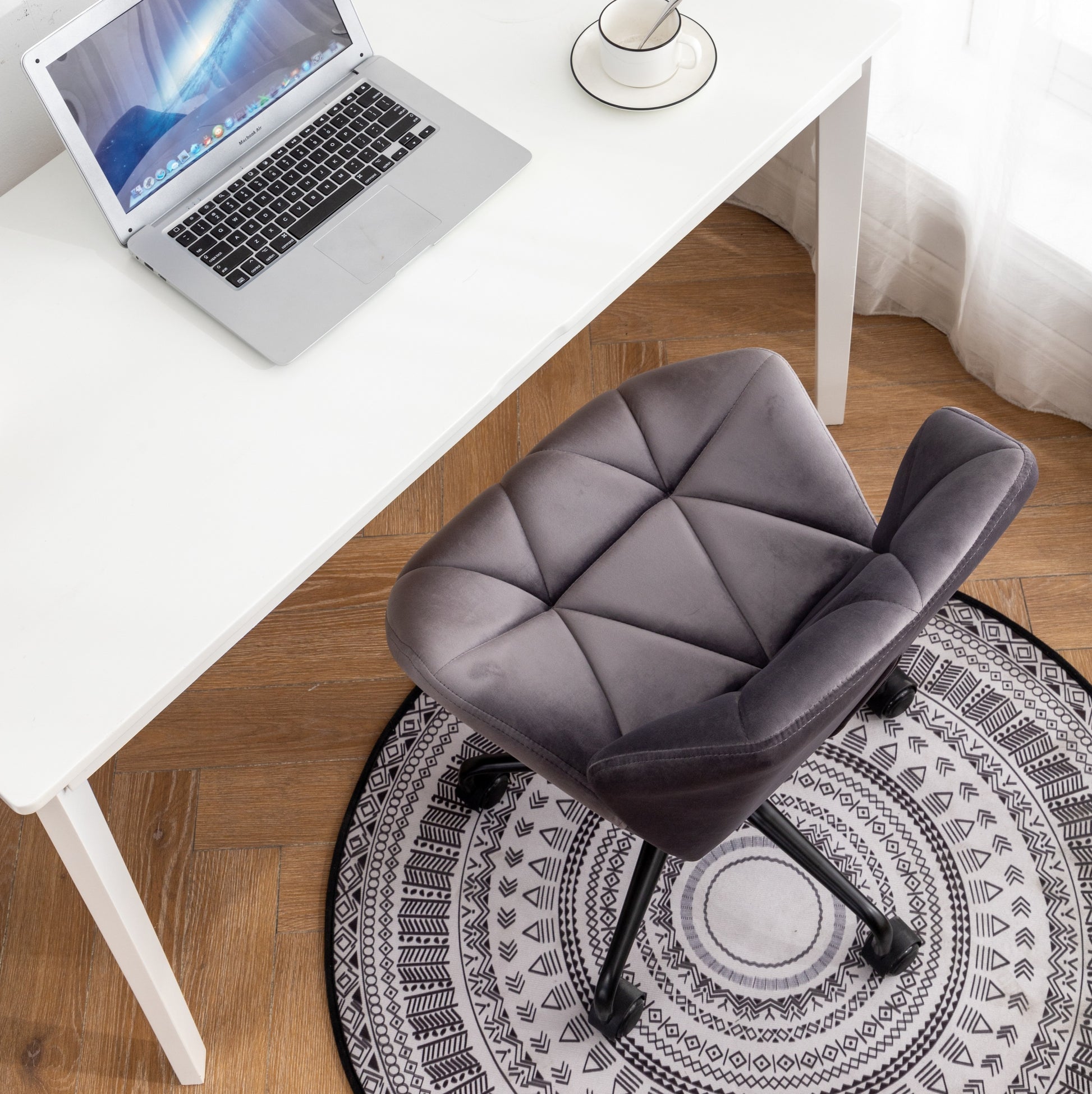 Gray Velvet Adjustable Swivel Office Chair with Diamond Tufting