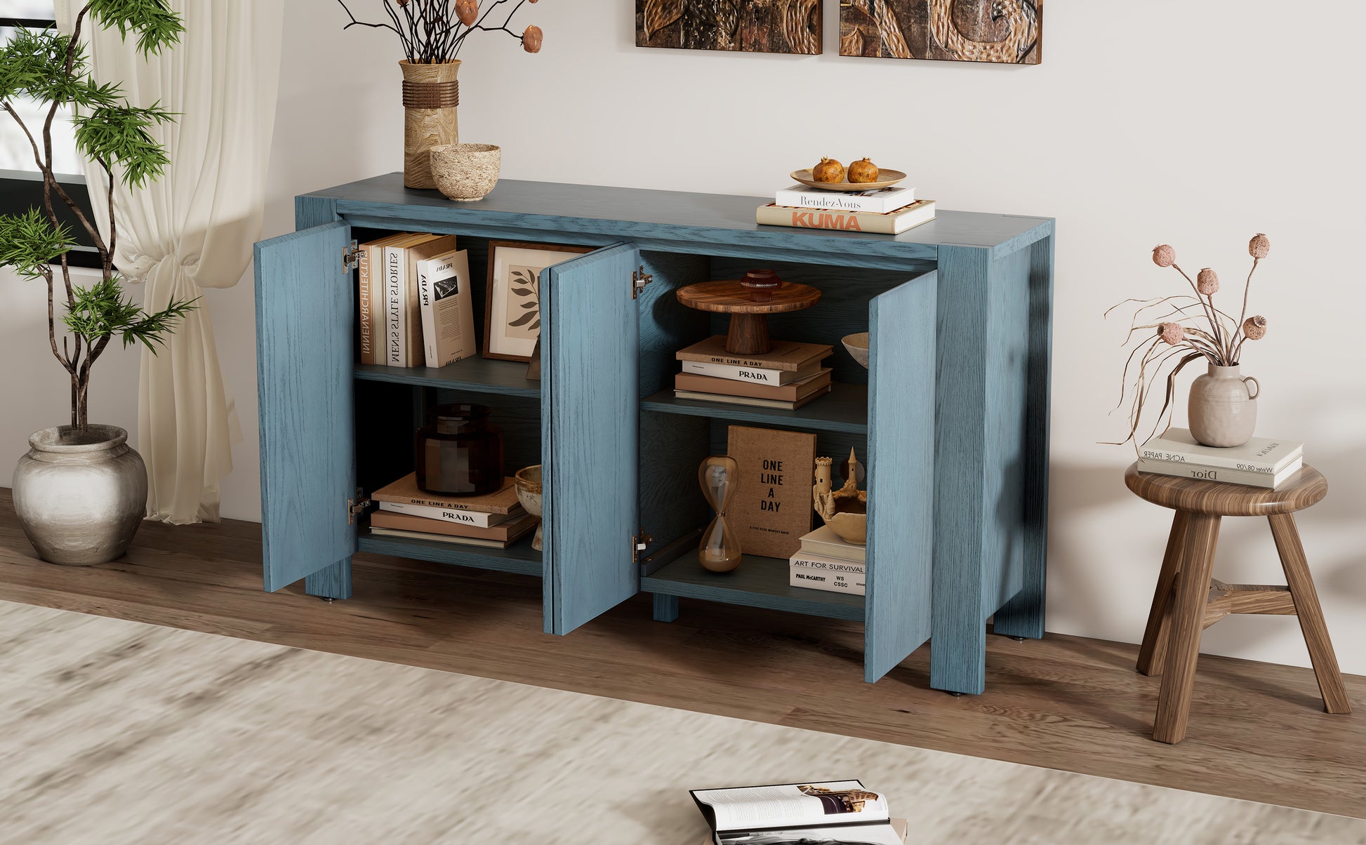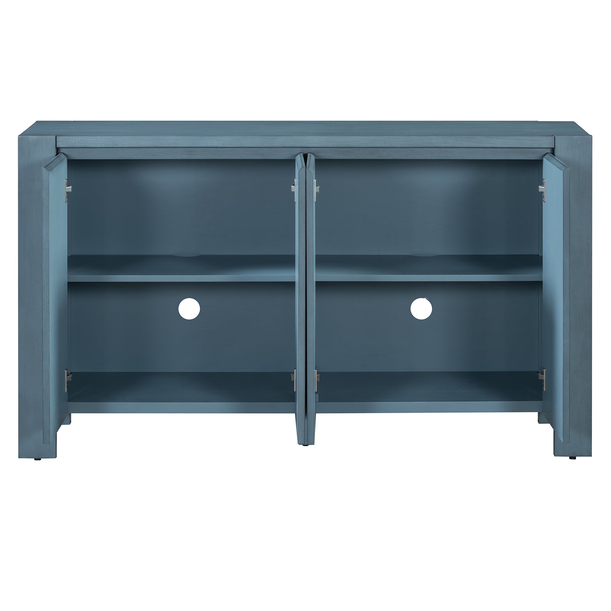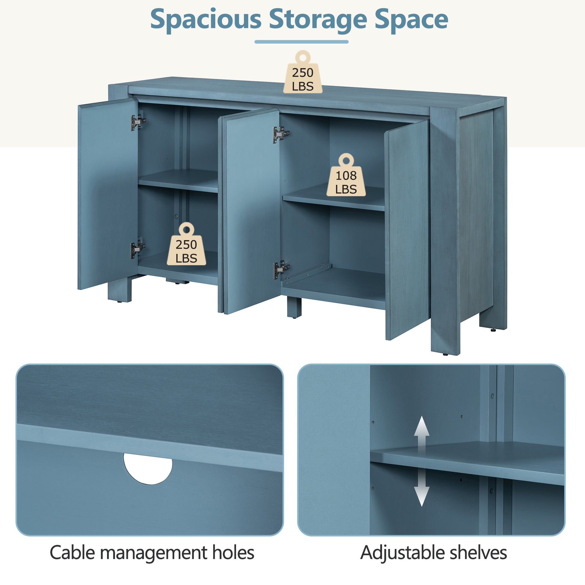 TREXM Retro 4-door Sideboard with Distressed Finish and Adjustable Shelves for Dining Room, Kitchen, and Living Room (Navy)