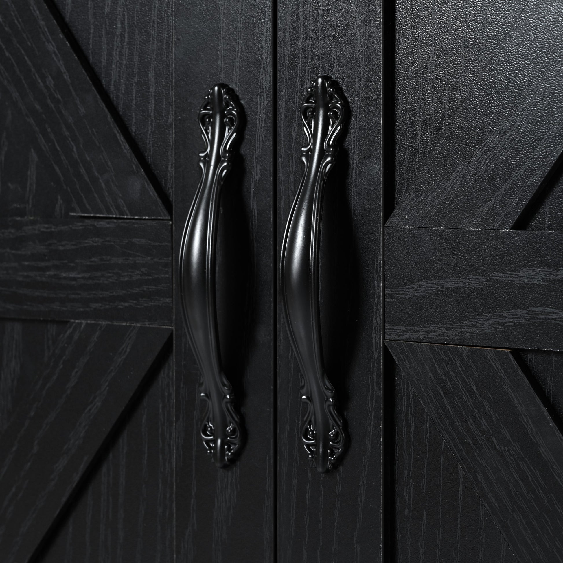- Glamorous Farmhouse Style: Boasting a unique design with exquisite X barn doors and a charming distressed finish, this kitchen island adds a rustic touch to any kitchen while showcasing natural variations in grain and color.