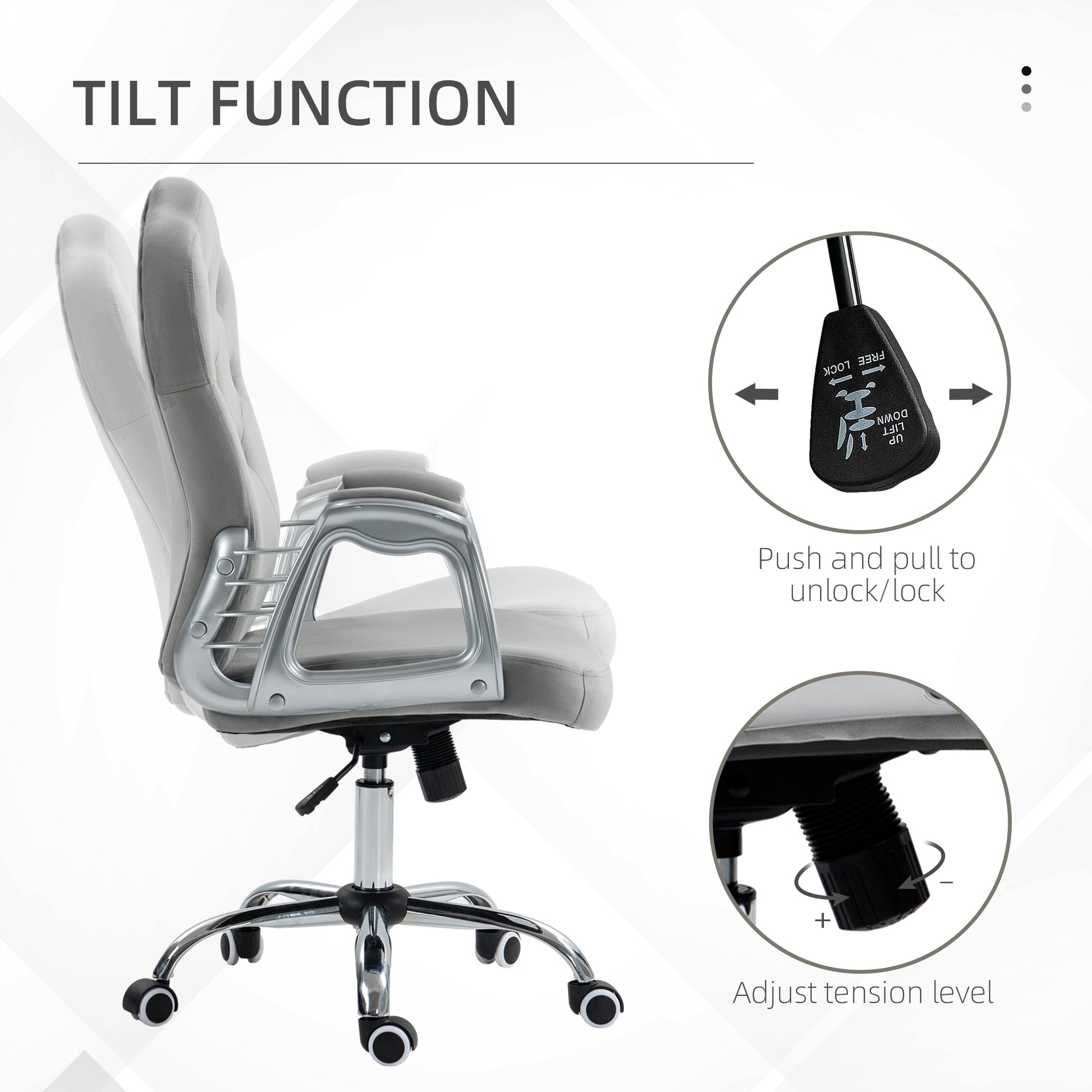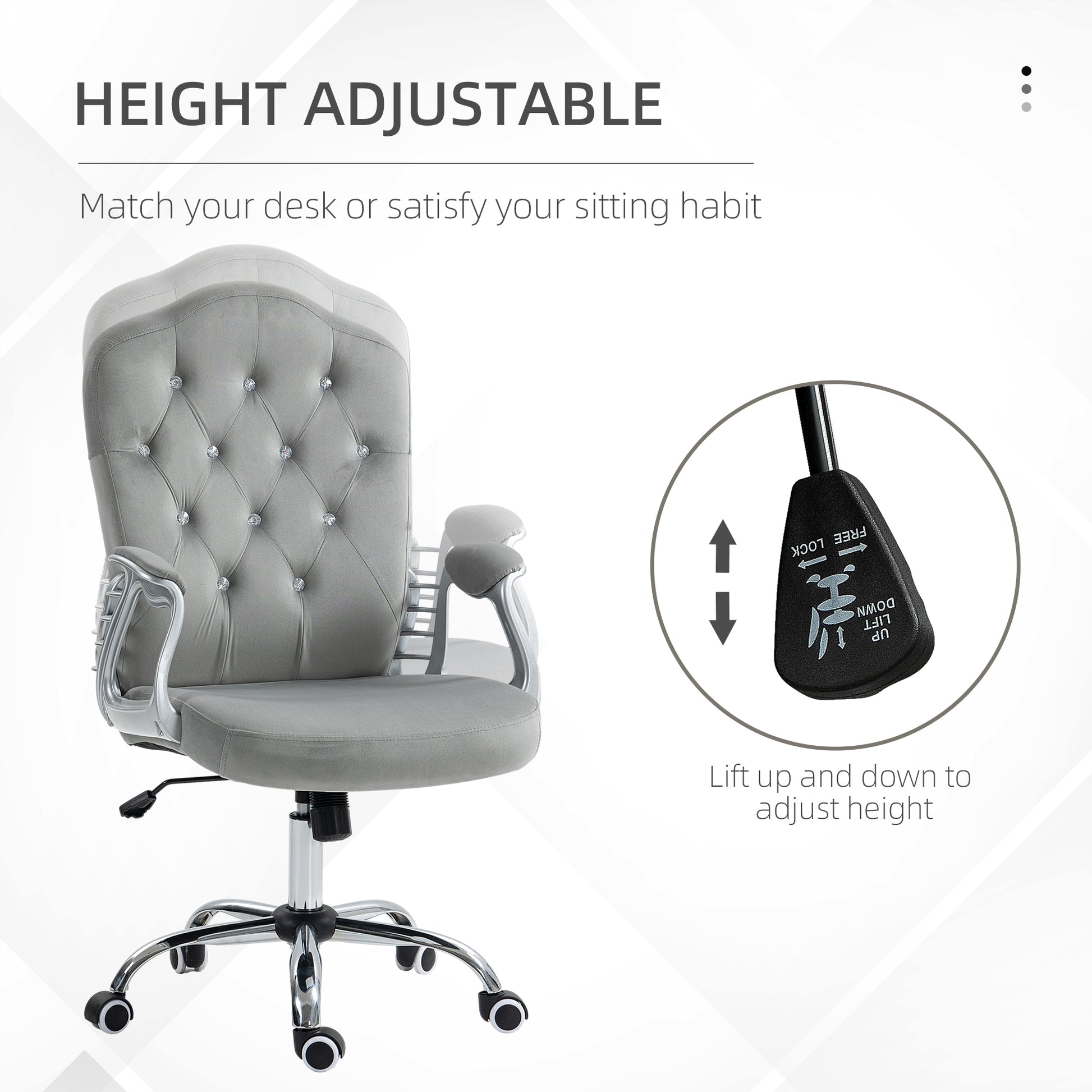 Velvet Tufted Swivel Office Chair with Adjustable Height and Tilt Function in Light Gray