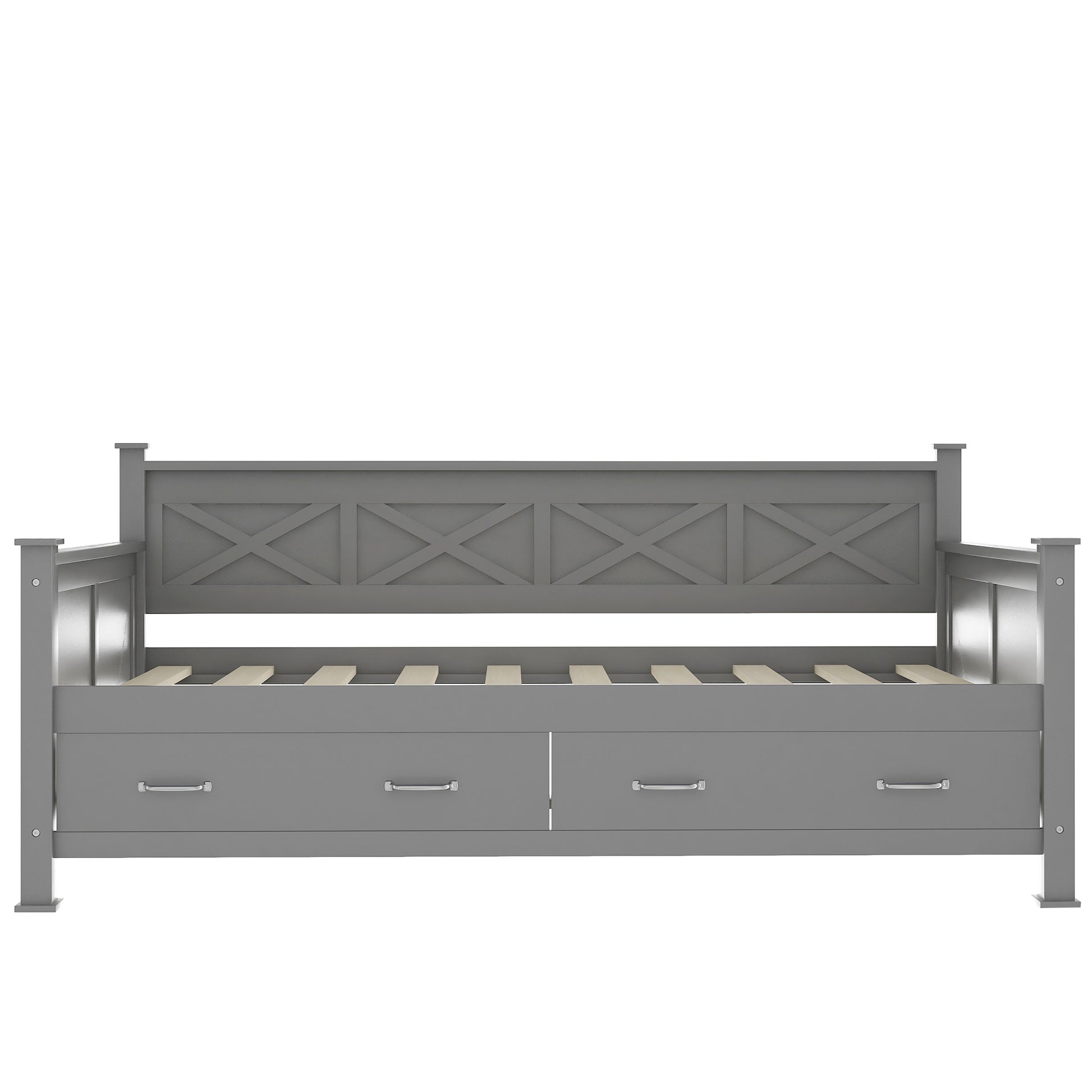 Elegant Twin Size Daybed with Spacious Drawers, X-Frame Design, Modern Rustic Appeal in Gray