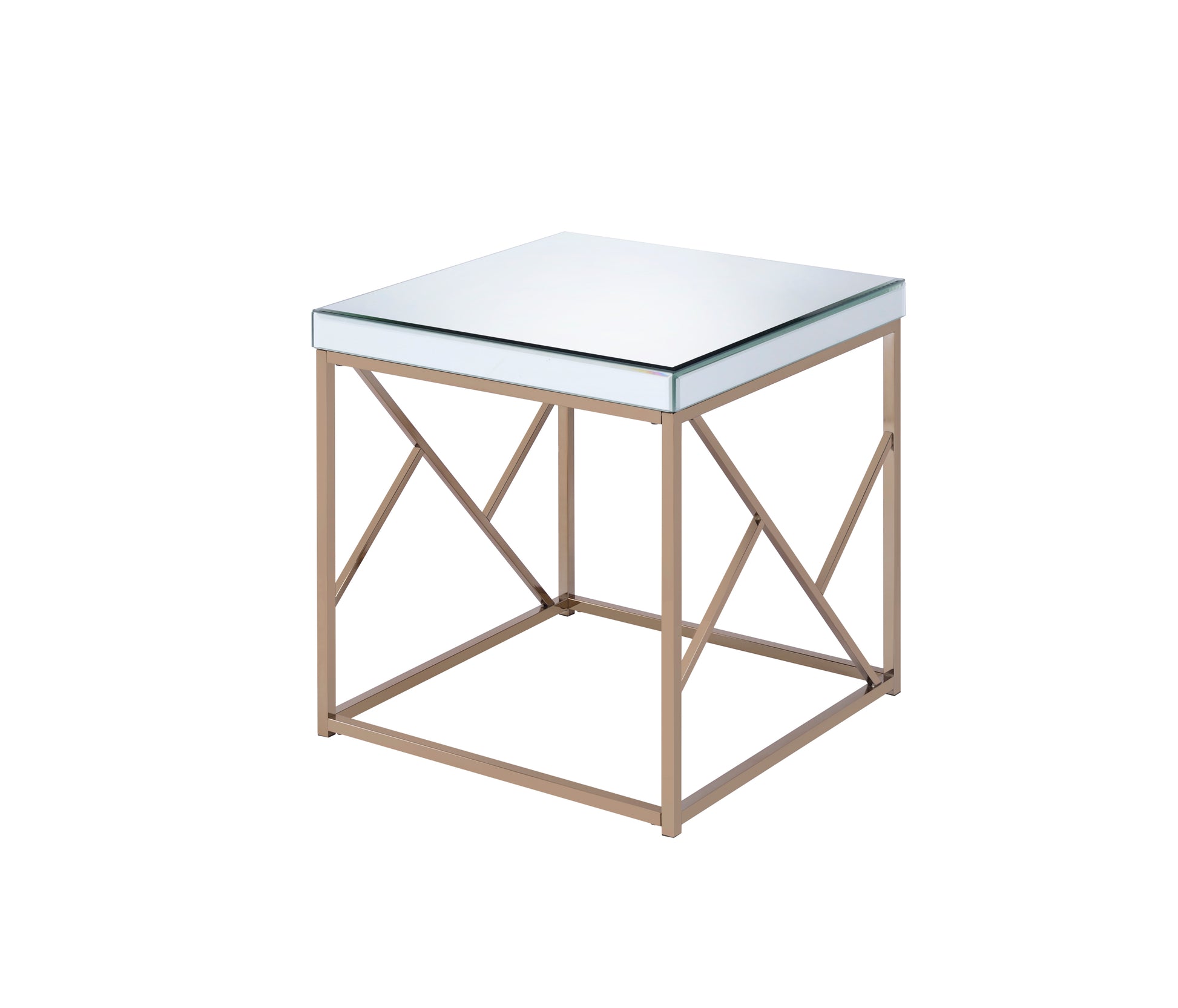 Contemporary 23-Inch Square End Table with Mirror Top and Iron Base, Copper Chrome Finish