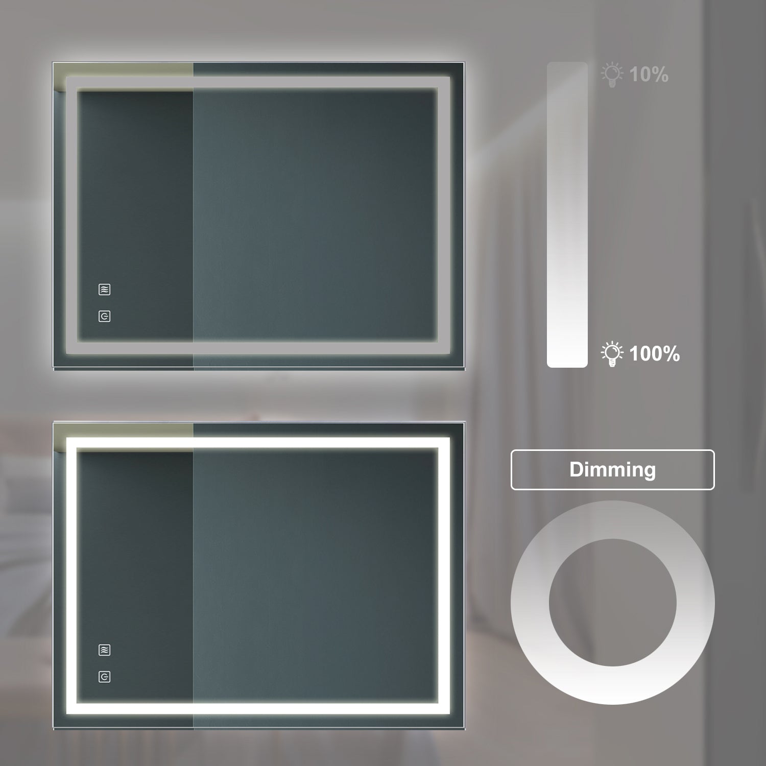 - Anti-Fog Function: The built-in anti-fog feature ensures a clear reflection, eliminating the hassle of foggy mirrors after a hot shower. This function automatically turns off after one hour for safety and energy efficiency.