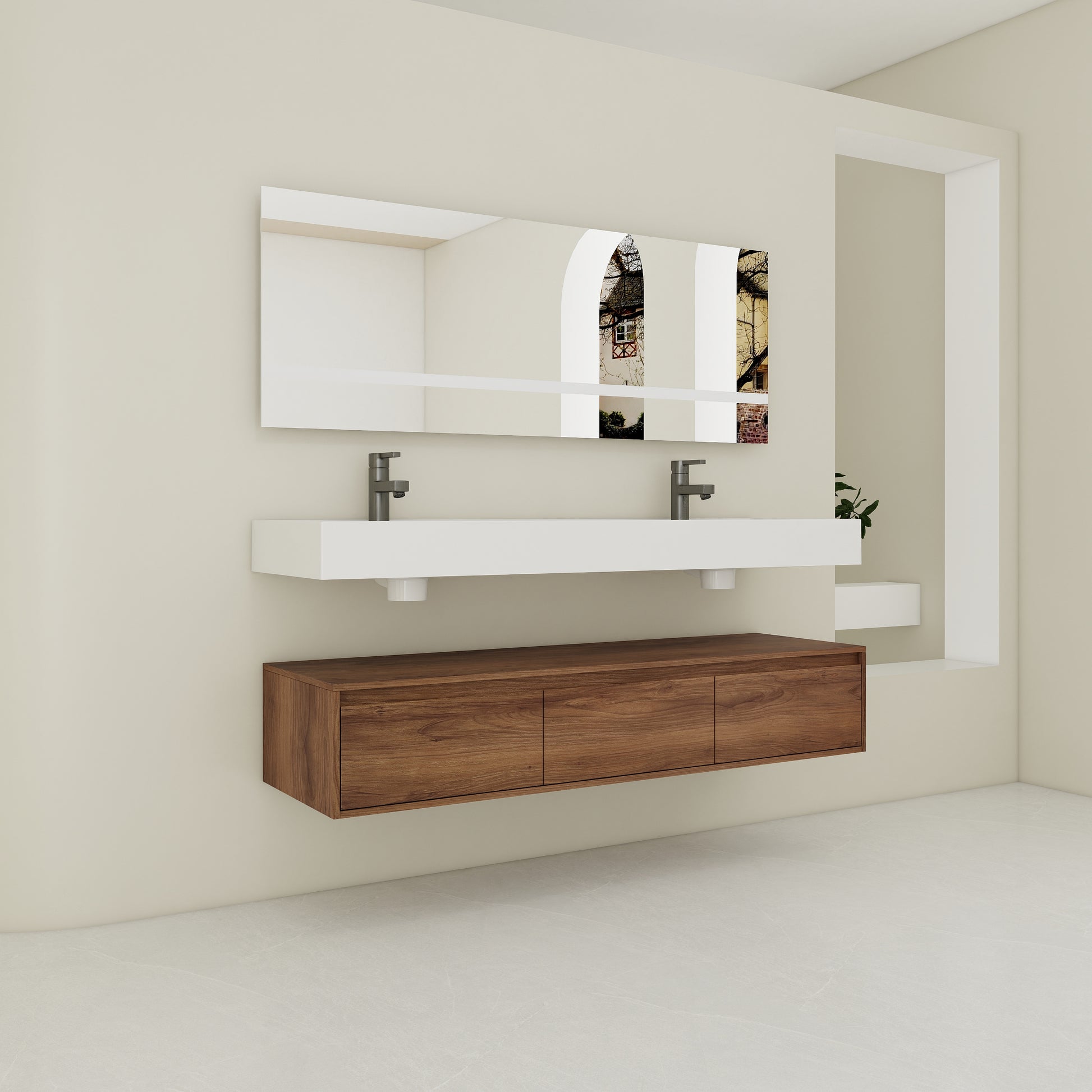 Transform your bathroom into a serene and stylish retreat with our Contemporary 60-Inch Wall-Mounted Bathroom Vanity. Experience the perfect blend of elegance and functionality today!