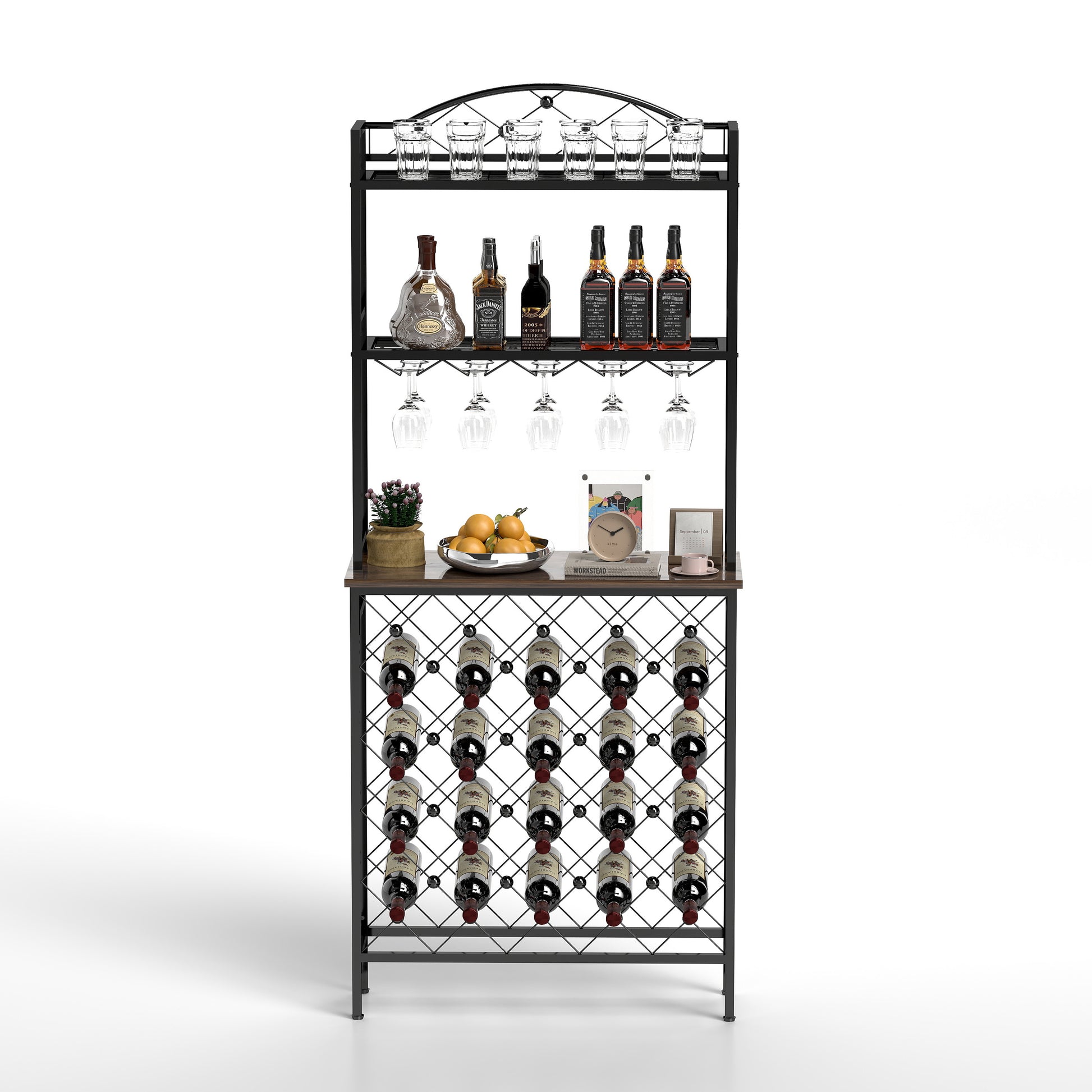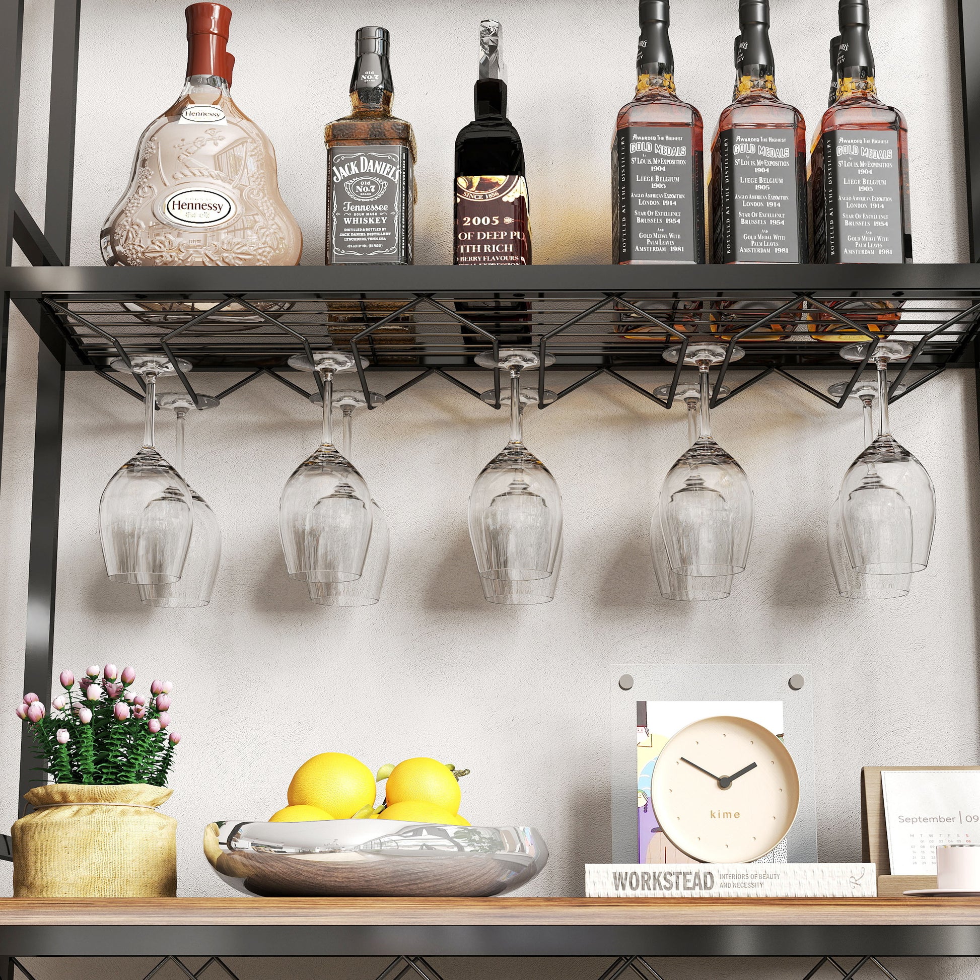 Designed for function, this three-tier design provides ample space to organize wine bottles, glassware, decanters, and everyday bar essentials. Built to endure daily use, its durable metal frame supports sturdy wood shelves that resist wear while adding rustic sophistication to your home bar or dining area.