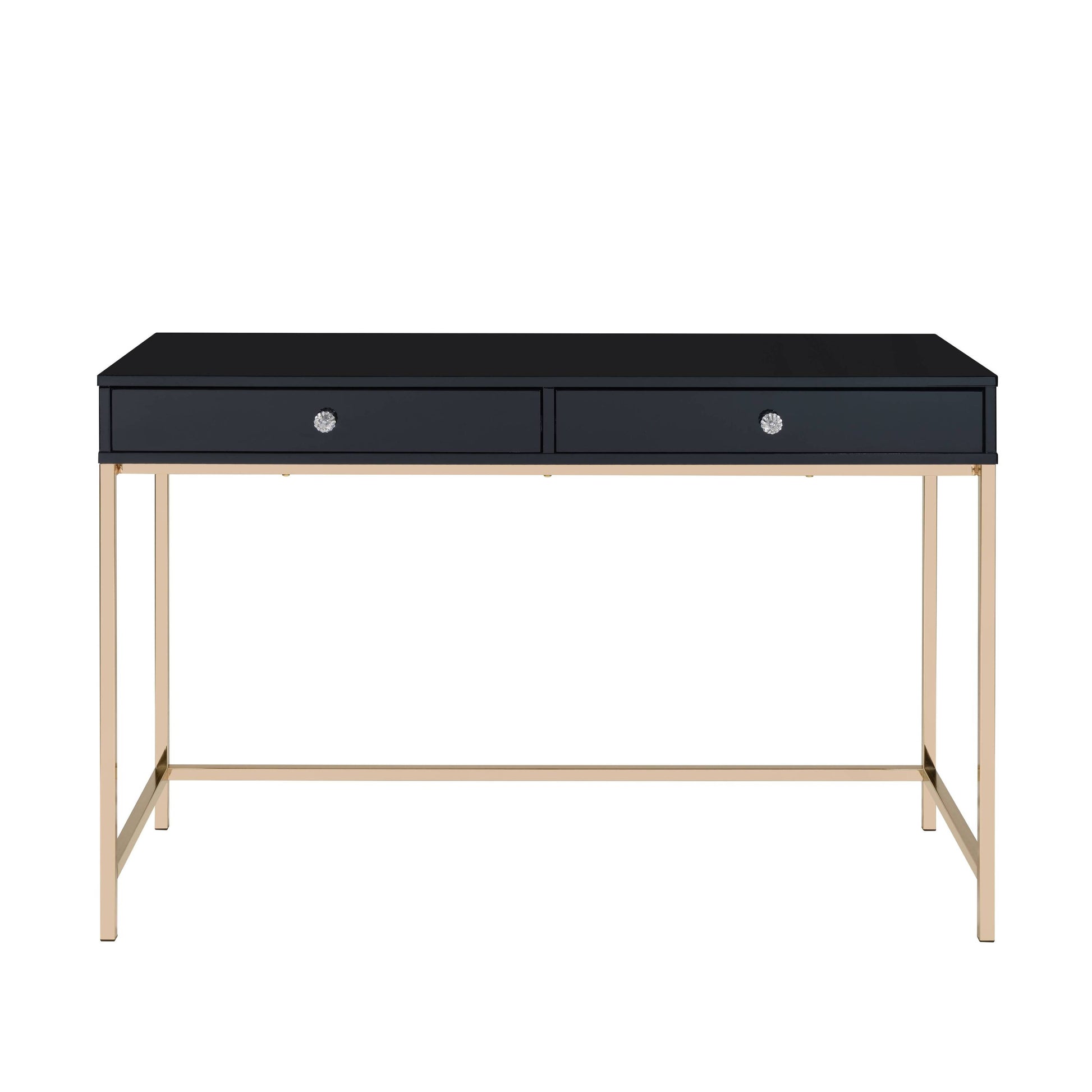 Contemporary Black and Gold Two-Drawer Office Writing Desk