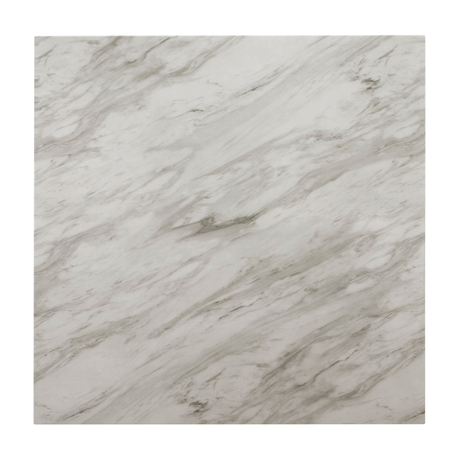 - Square table with white faux marble top creates a clean, elegant focal point in your dining room.