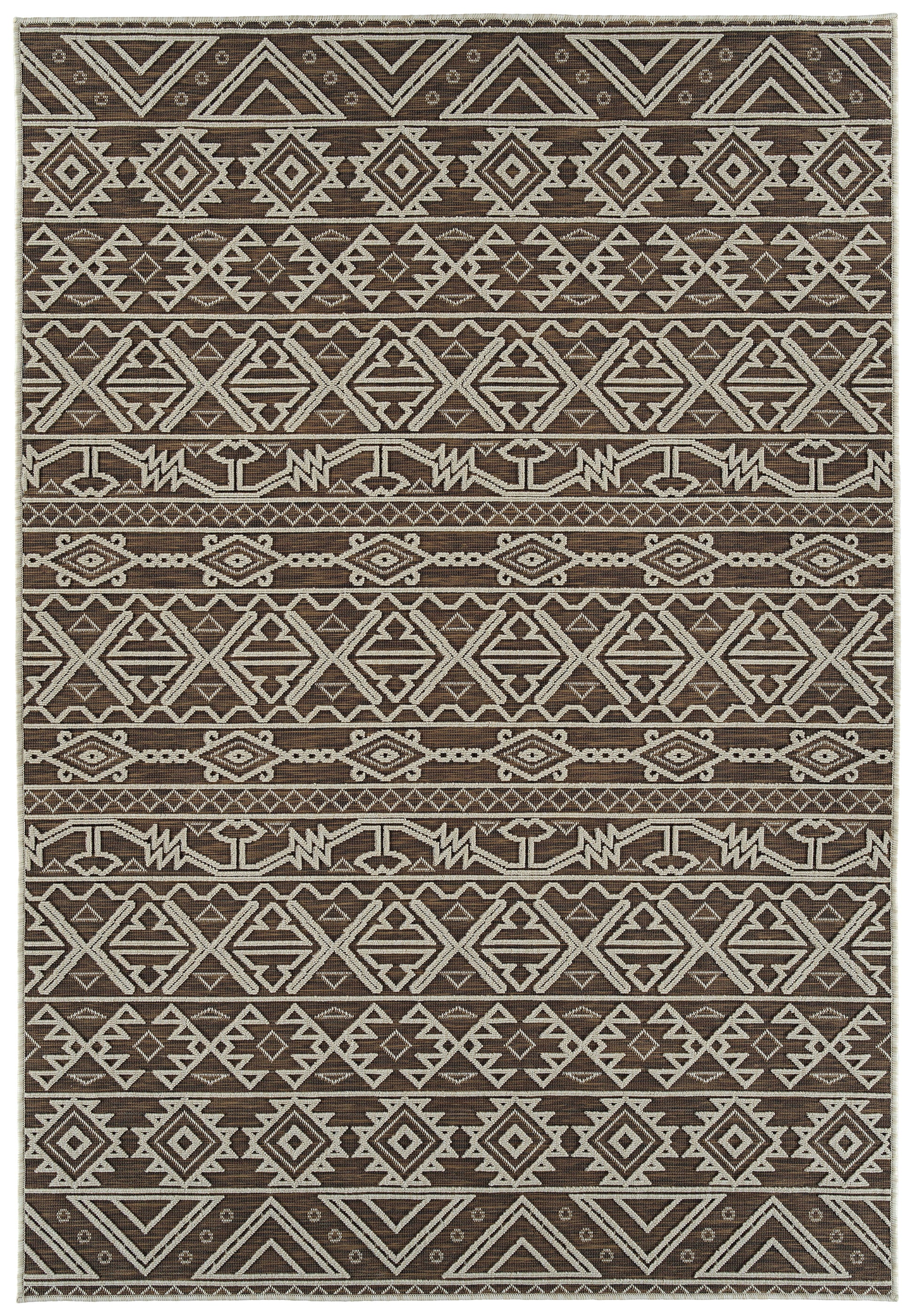 2' x 3' Indoor/Outdoor Throw Rug — Polypropylene, High-Low Textured, Contemporary Geometric, Chocolate