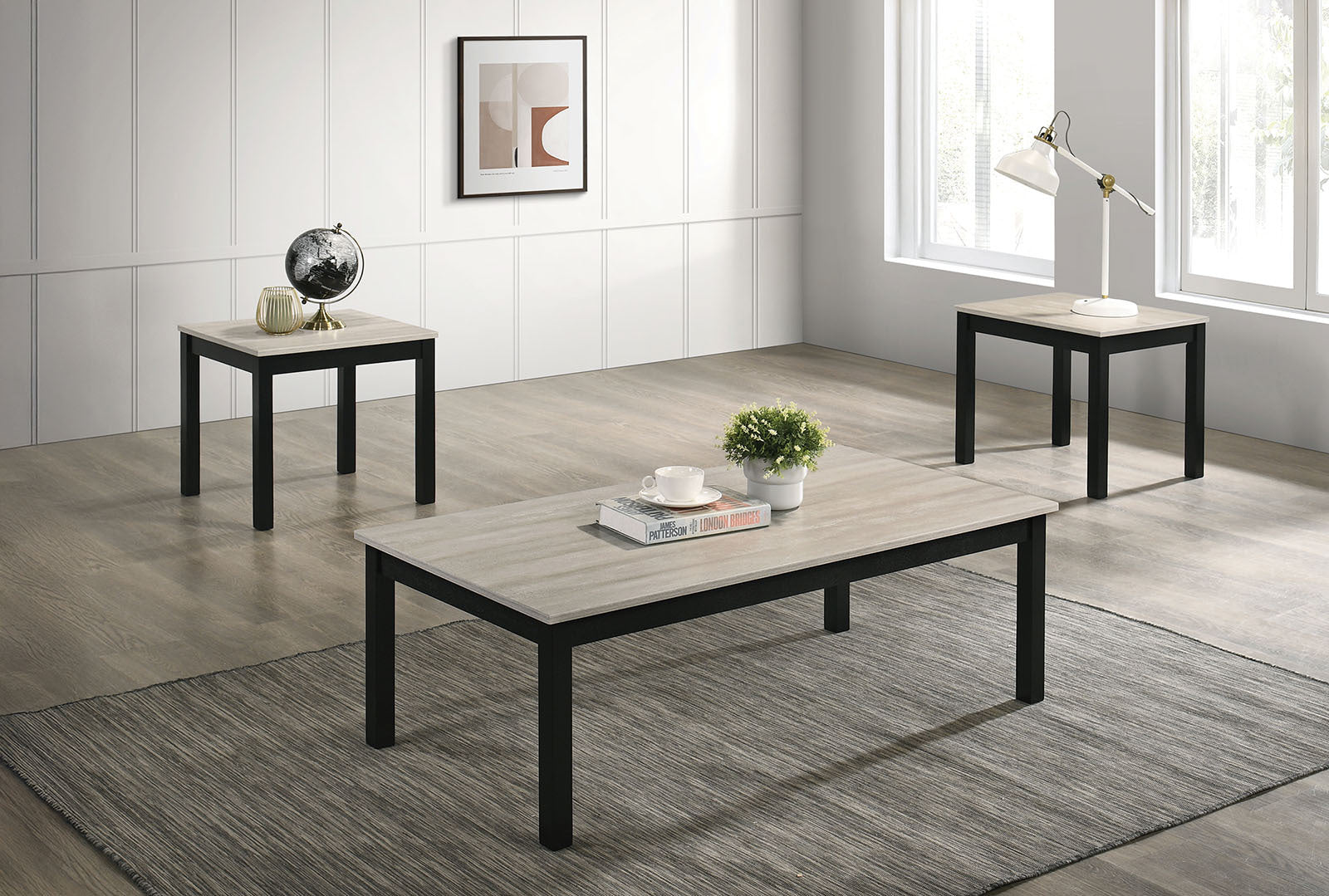Contemporary 3-Piece Coffee Table and End Tables Set with Faux Marble Top — Light Gray
