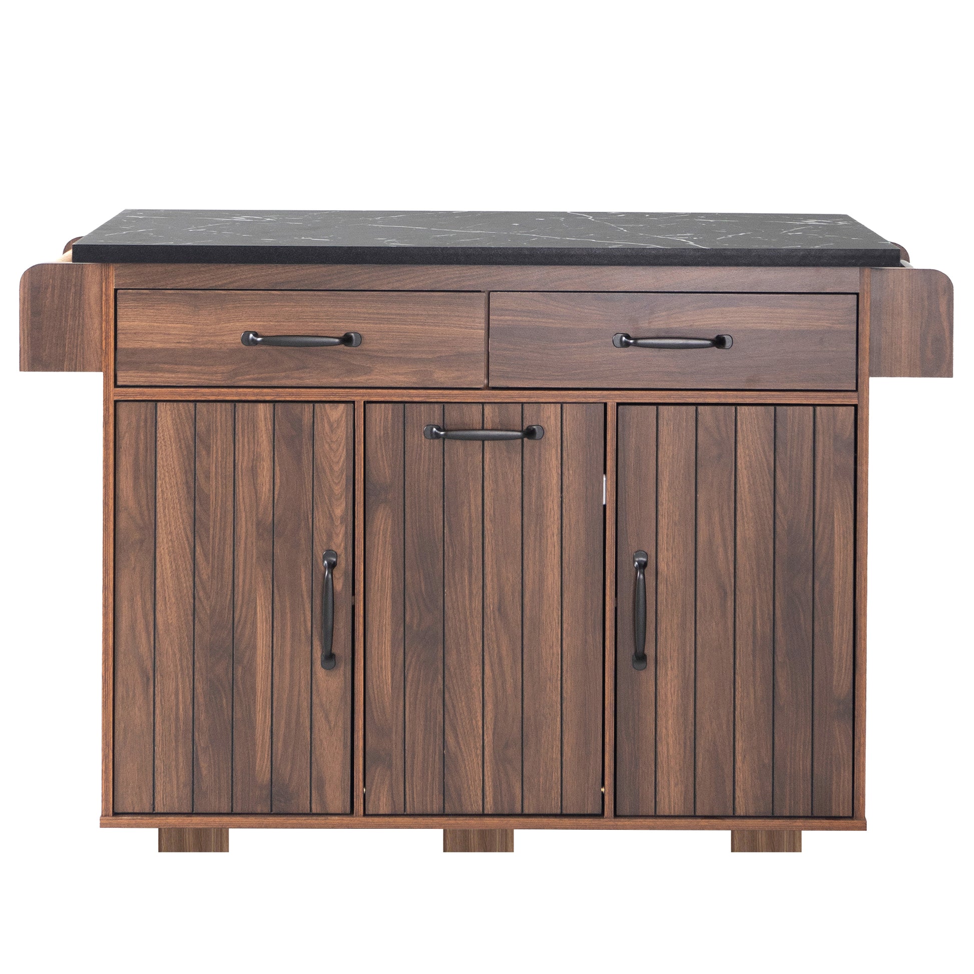 Walnut Brown Rolling Kitchen Island with Drop Leaf, Trash Can Storage, Spice & Towel Racks, and Adjustable Shelves