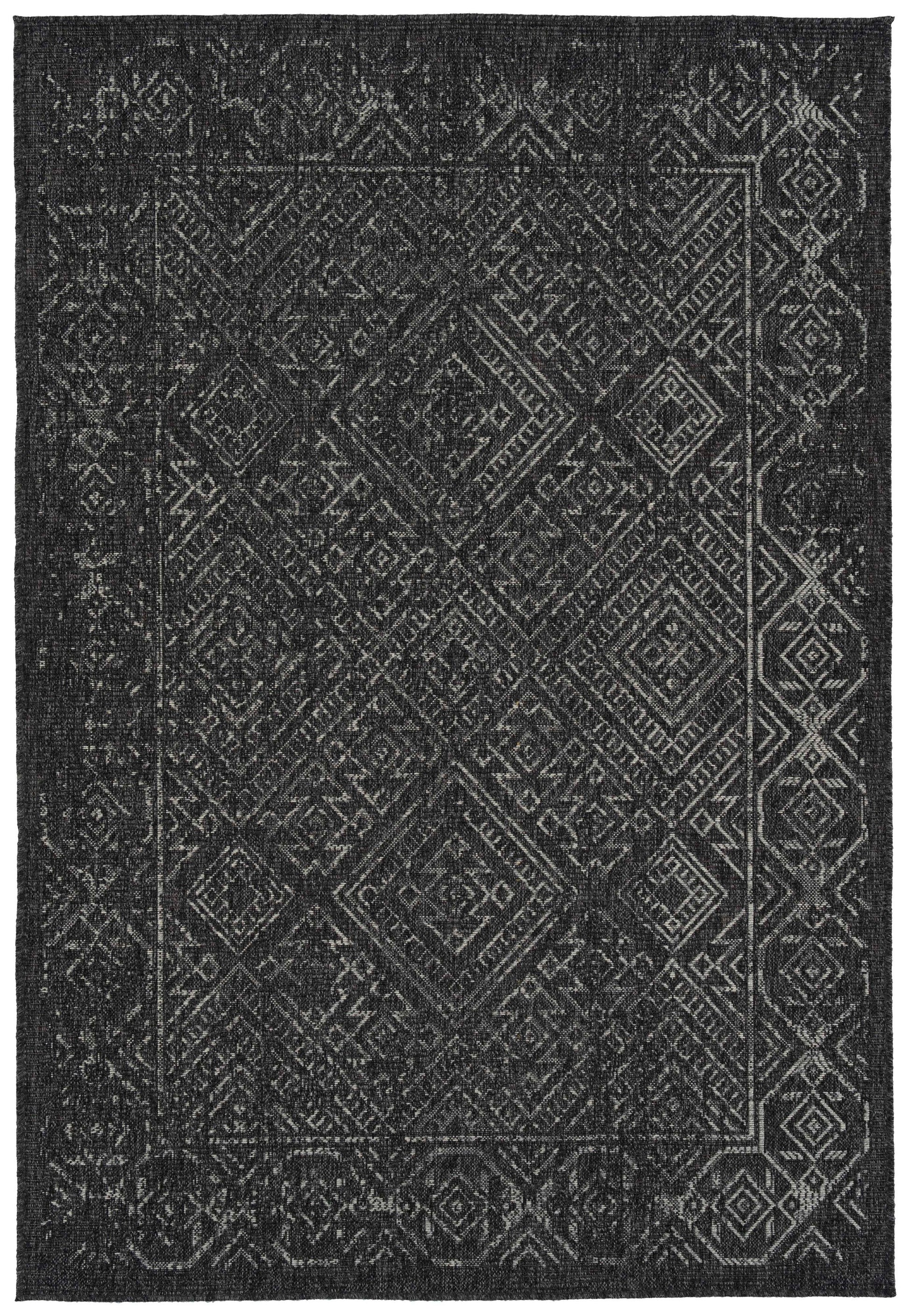 Introduce contemporary style and tactile dimension to any room with this charcoal rectangle area rug. Measuring 5'3" x 7'6", it features a modern geometric pattern rendered in a textured high-low loop for added depth underfoot. Crafted from durable polypropylene, this rug offers easy maintenance and lasting performance in high-traffic areas.