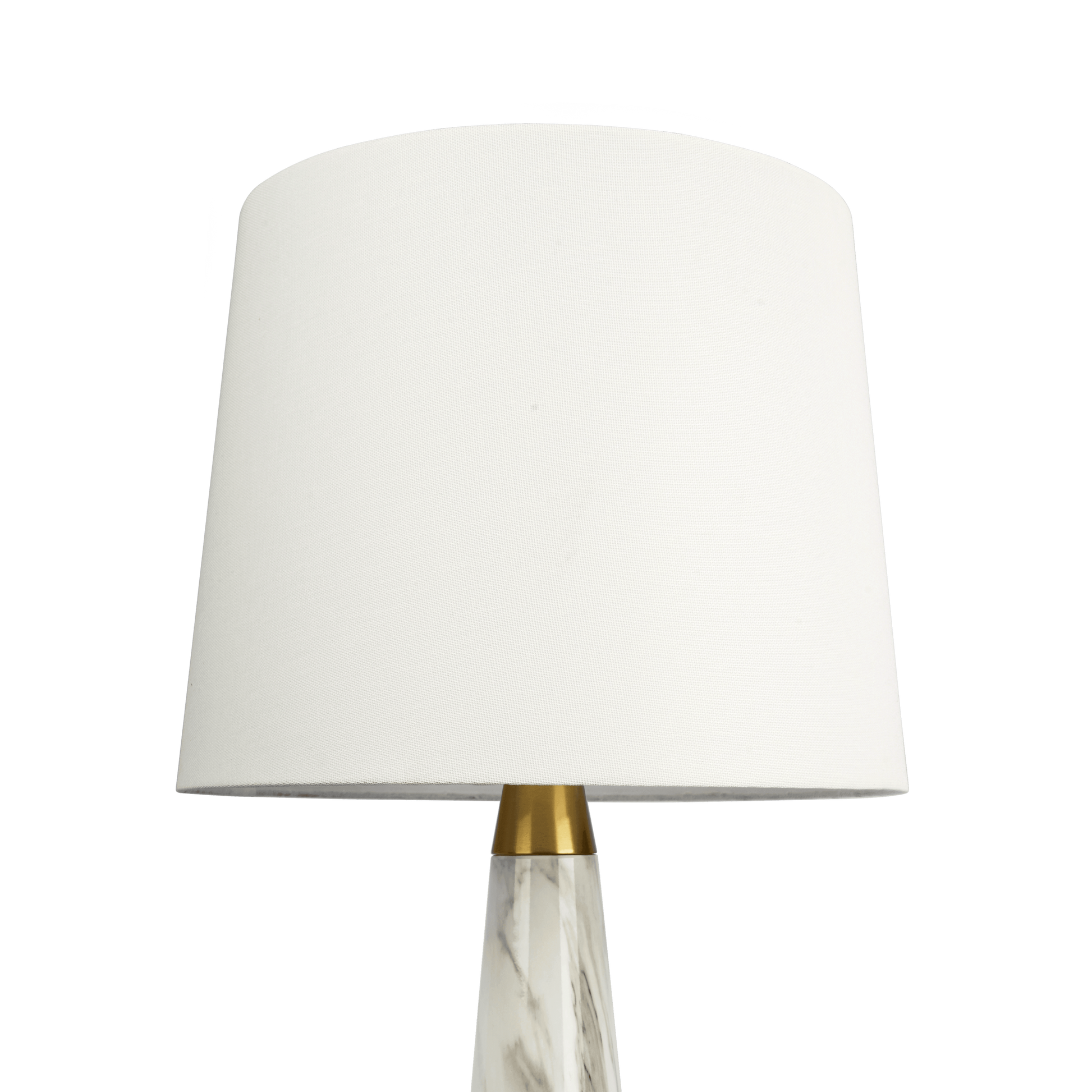 Designed for versatility, its white marble-inspired base and gold accents complement contemporary, traditional, and transitional decor. The compact 14 in. x 14 in. base and 25 in. height make it an ideal accent on a side table, nightstand, desk, or console.