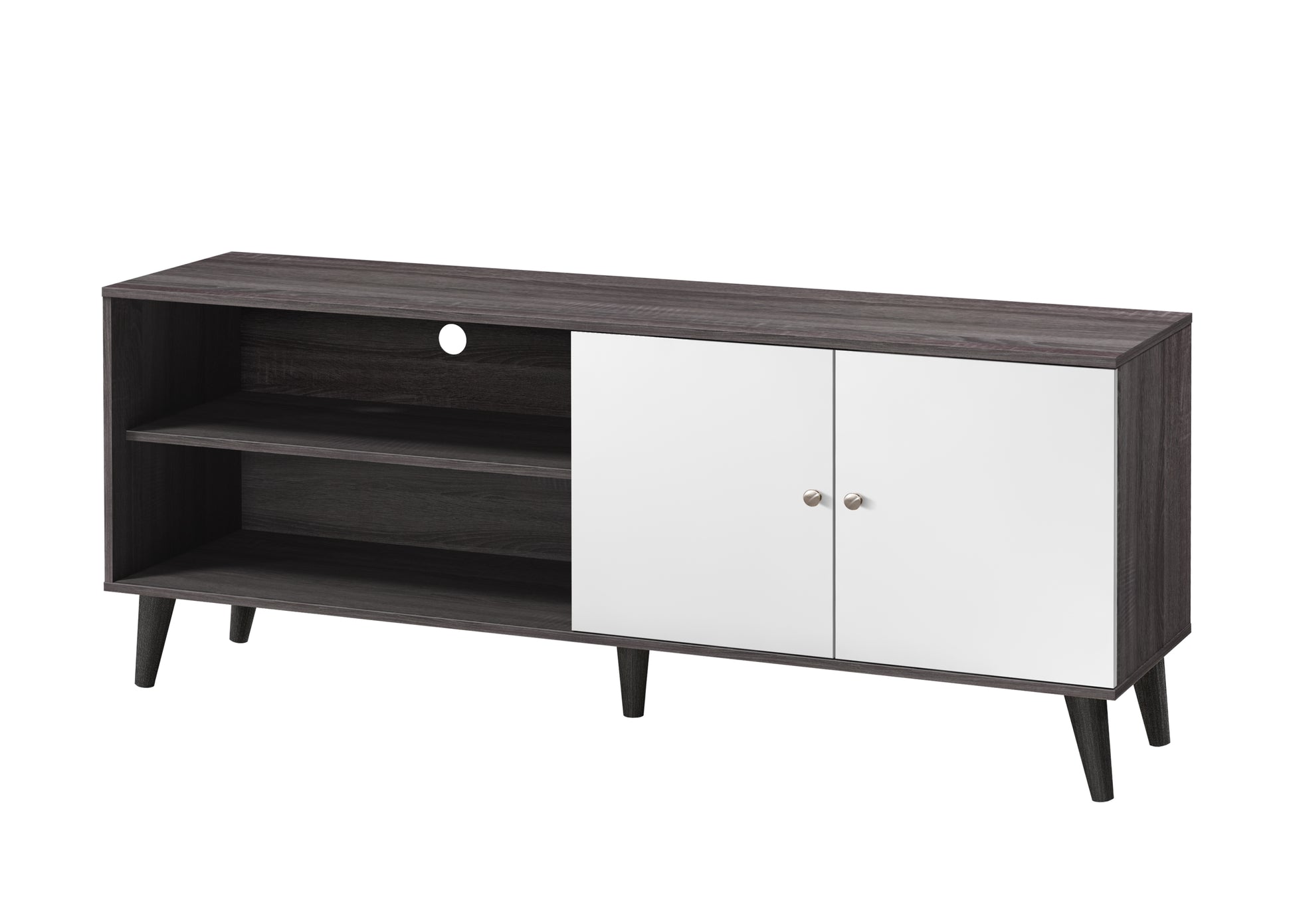 Mid-Century Modern TV Stand for 63-Inch TVs, 2 Shelves + 1 Cabinet, Wood Console Dark Gray/White