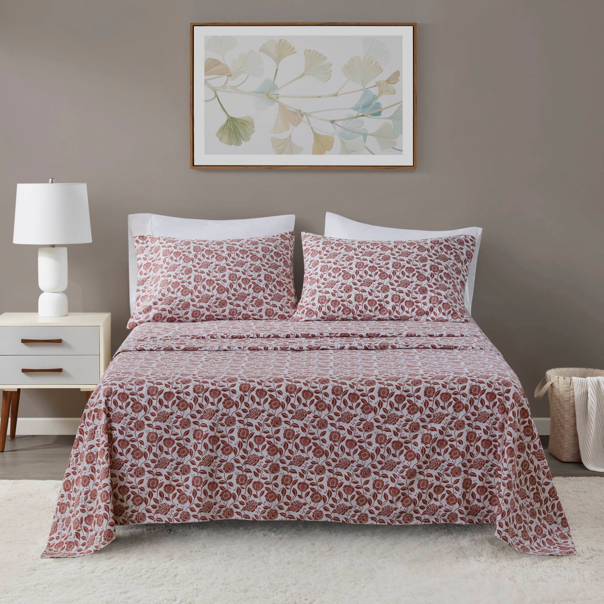 Queen 4-Piece Cotton Flannel Sheet Set — Rust Floral, OEKO-TEX Certified