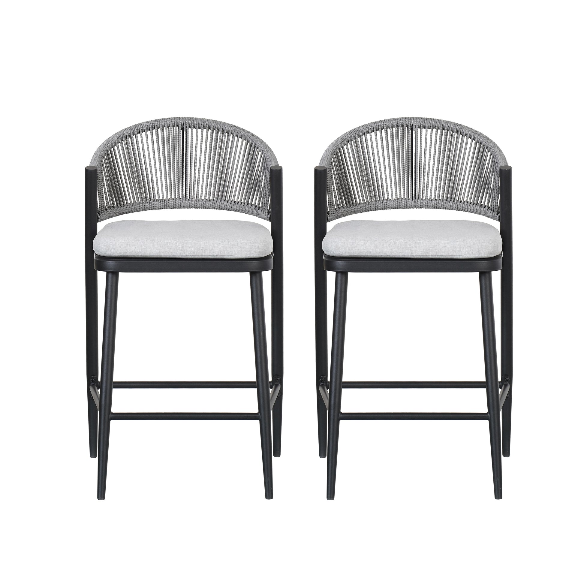 Outdoor 26 Inch Counter Height Metal Stools With Scalloped Backrests And Waterproof Cushions Set Of 2 Matte Black