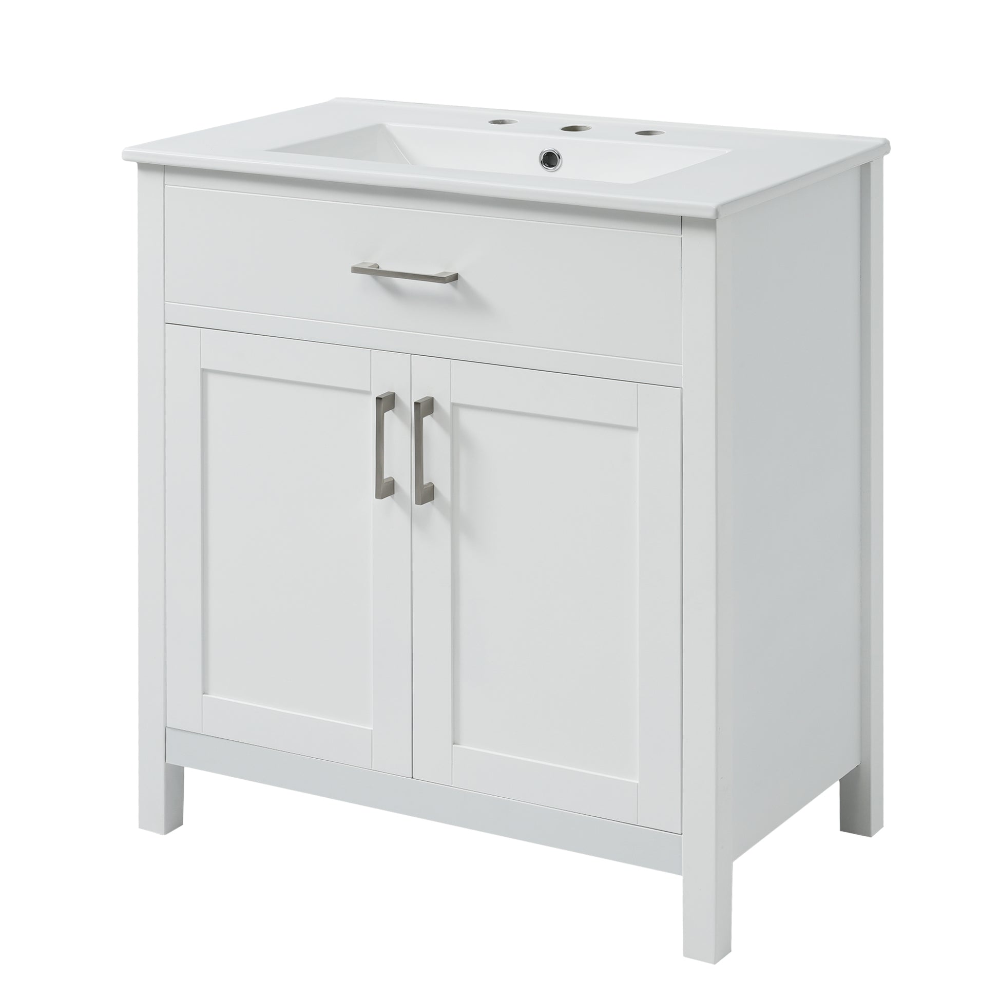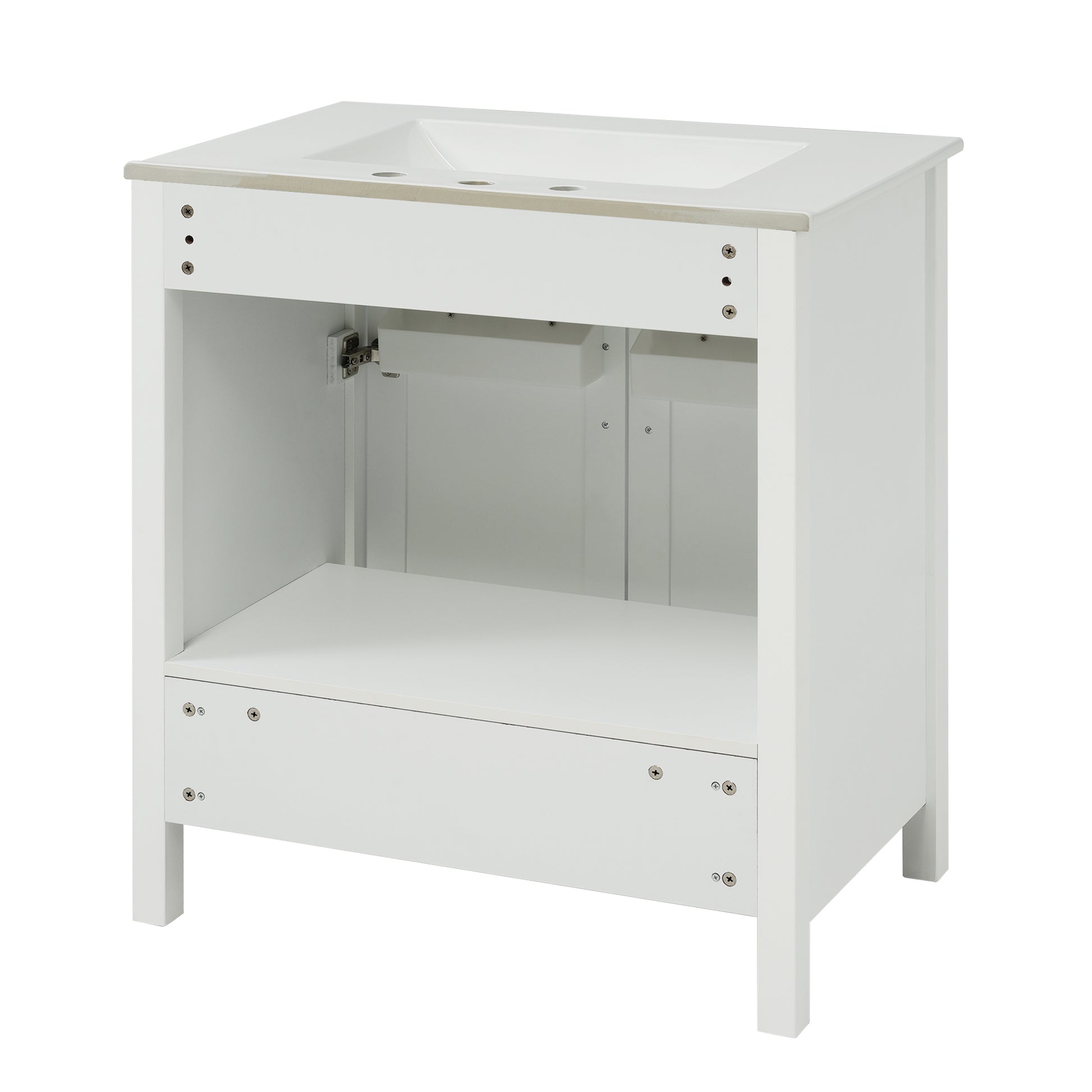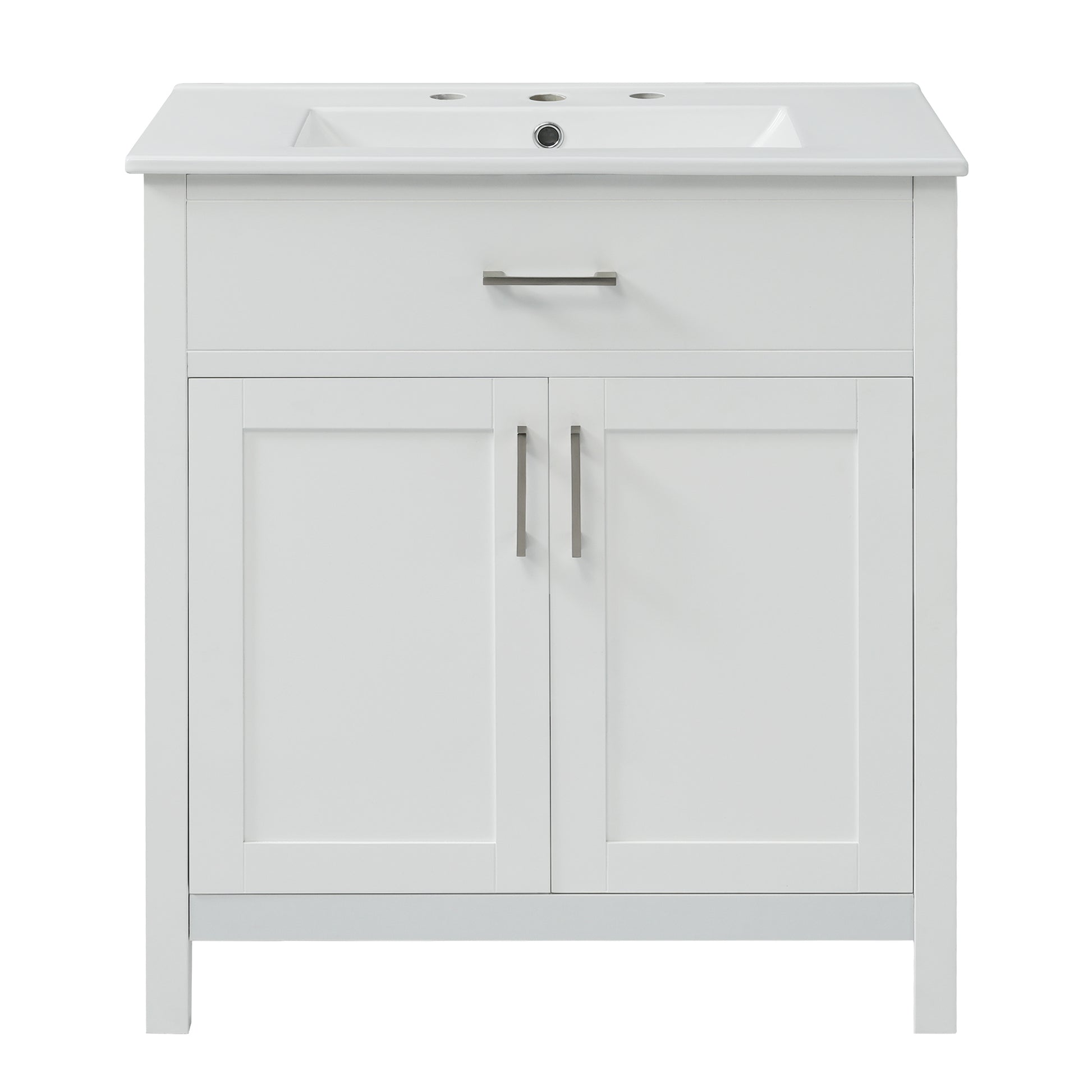 Elegant 30-Inch White Bathroom Vanity with Ceramic Sink and Ample Storage for Compact Spaces